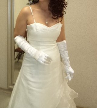 Продам свадебное платье+перчатки к нему. Платье на рост 165-170, размер груди 3-4 (при необходимости вышлю фото всех сторон платья). Возможна примерка. Звонить с 09-00 до 21-00 (торг уместен).